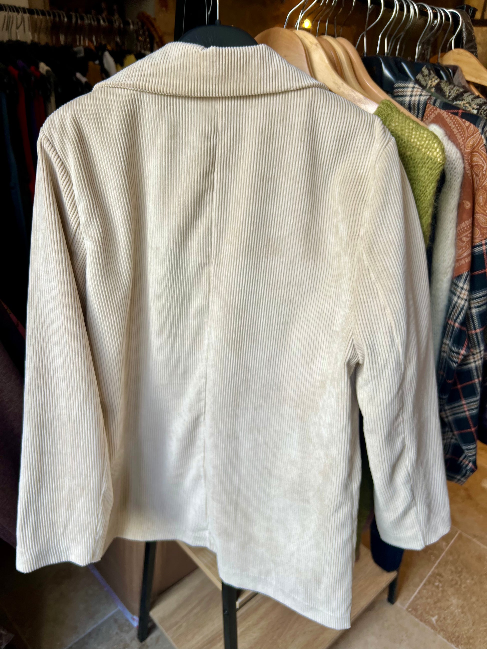 Super tendance, blazer côtelé 100% coton à porter avec un jean ou en total look avec la jupe longue Lila.