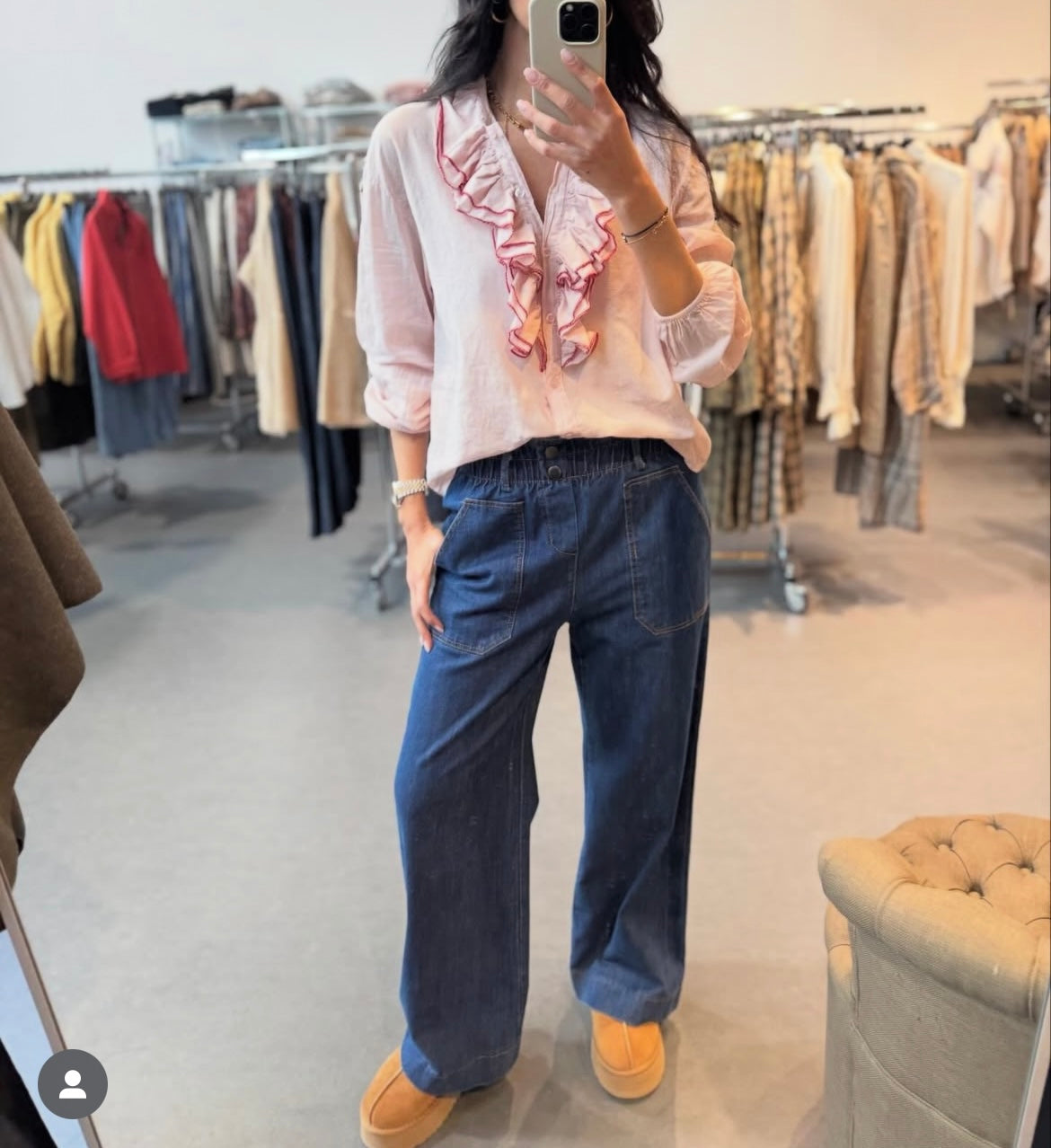 Chemise en coton avec volant/jabot sur le devant.