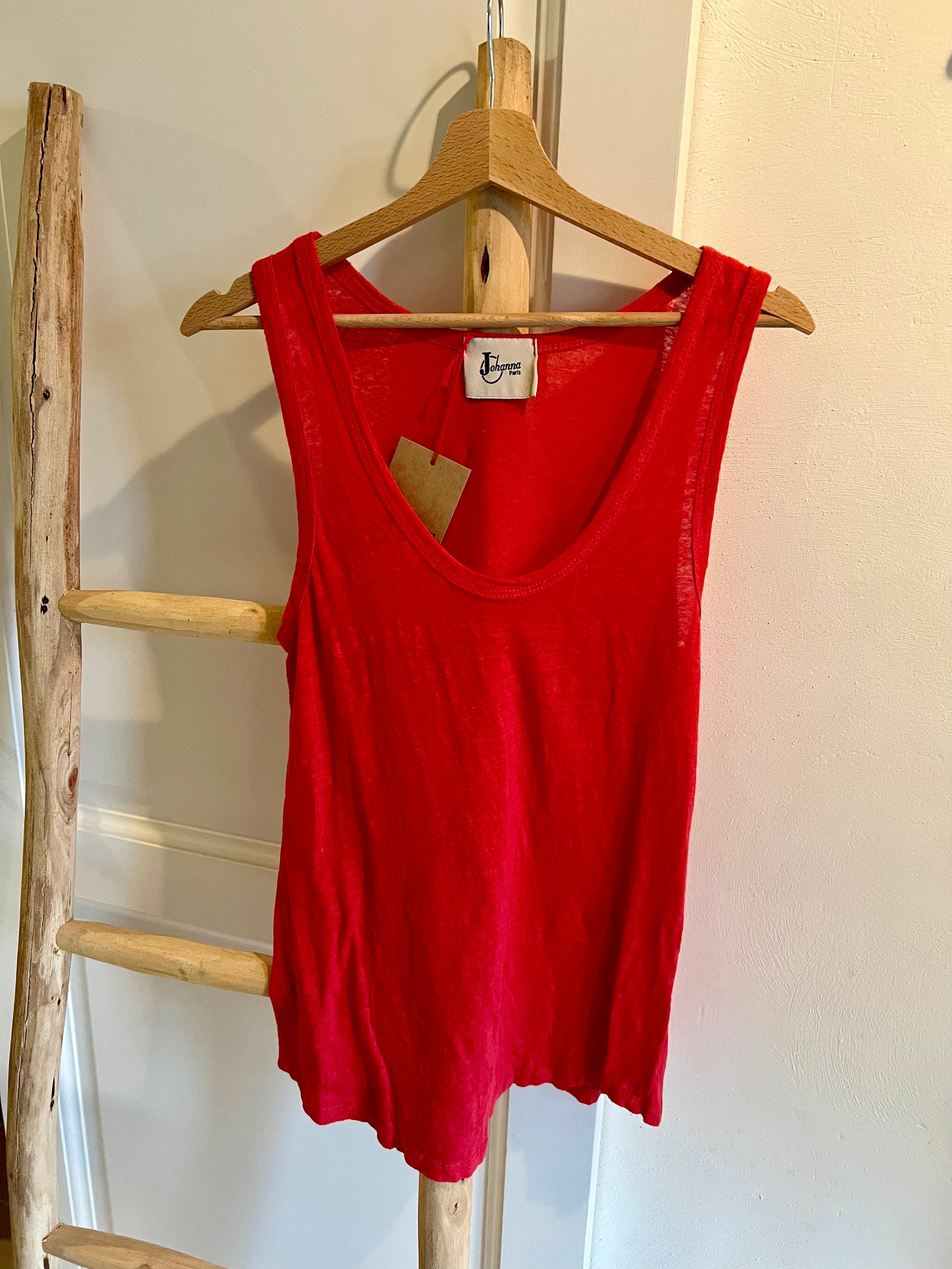 Ce t-shirt sans manches va avec tout : un short taille haute, une jupe en coton ou un pantalon ample. Son petit twist : un ourlet arrondi pour un top pas comme les autres