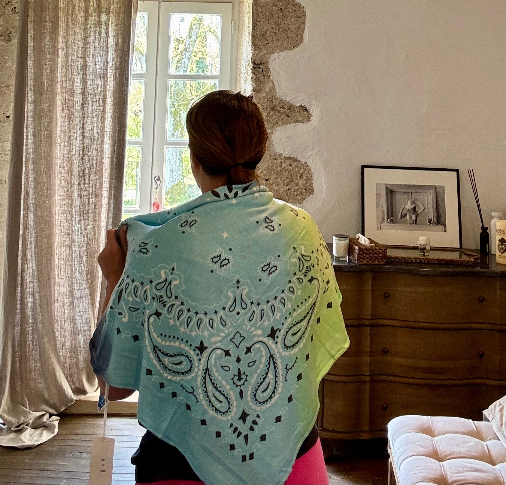 Promo-Foulard Zia vert d'eau et bleu-Adoré Paris