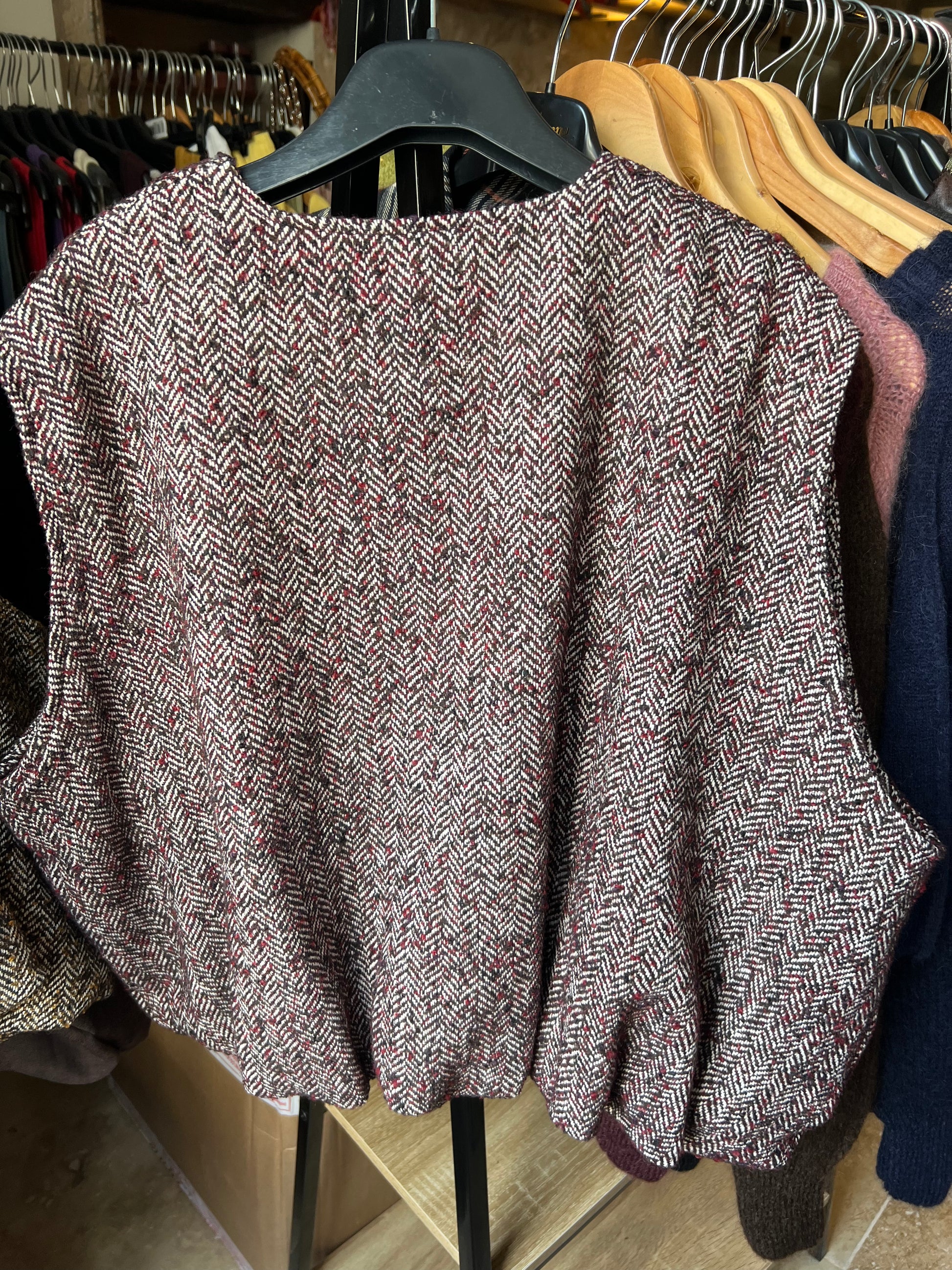 Gilet sans manche un peu oversize, à porter sur un sweat, pull ou chemise.