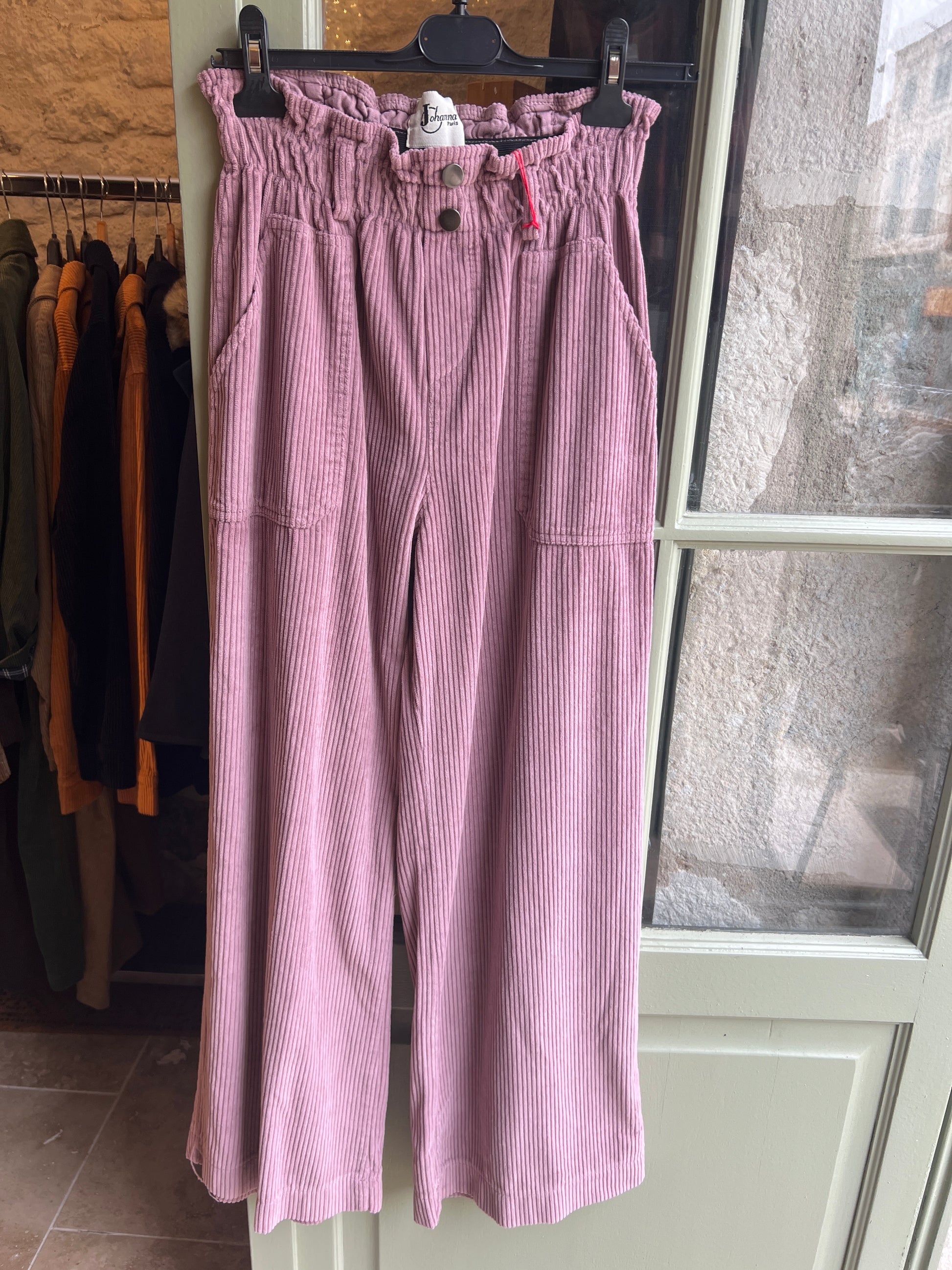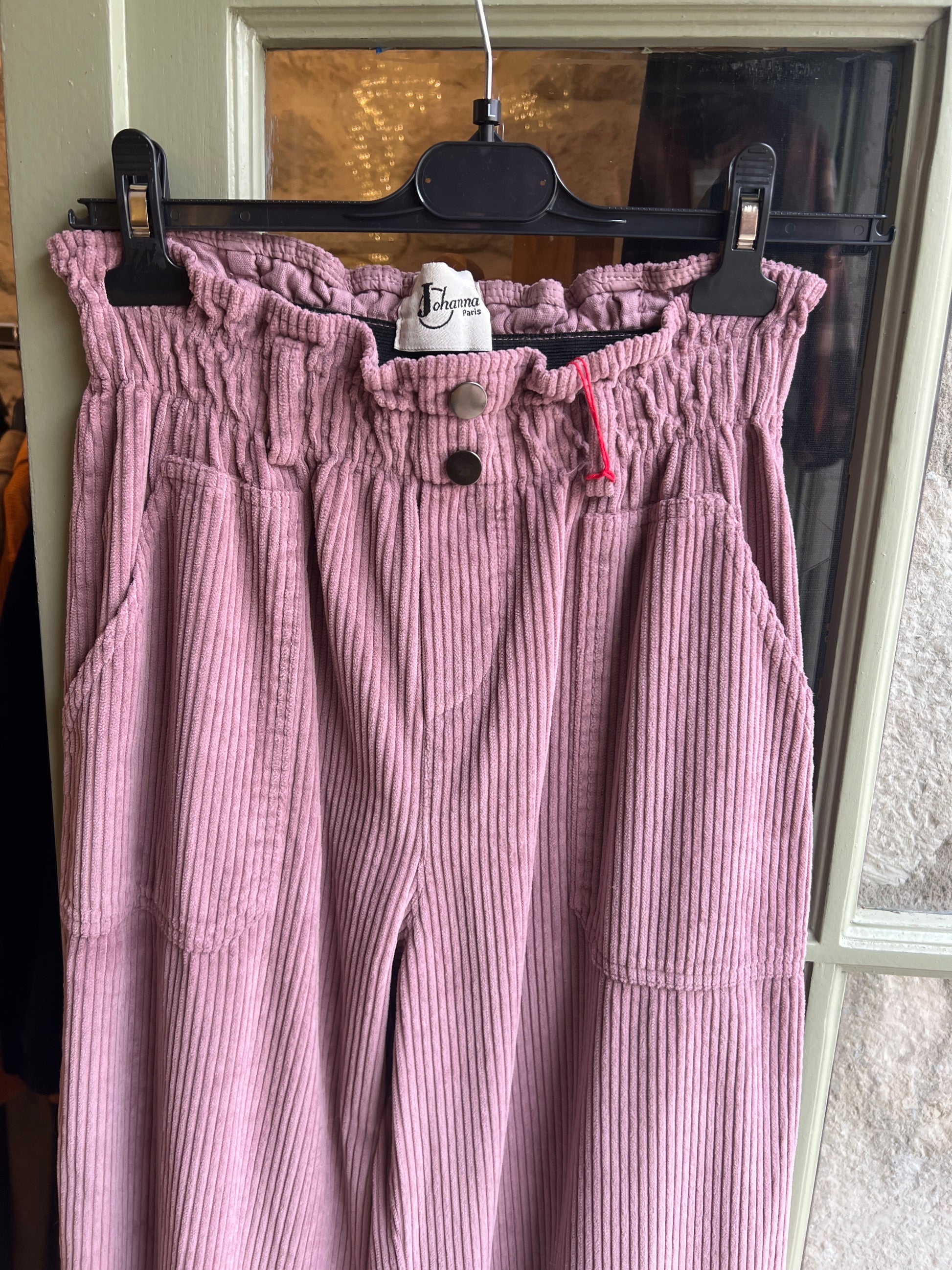 Pantalon velours Rose 2 boutons-Johanna Paris