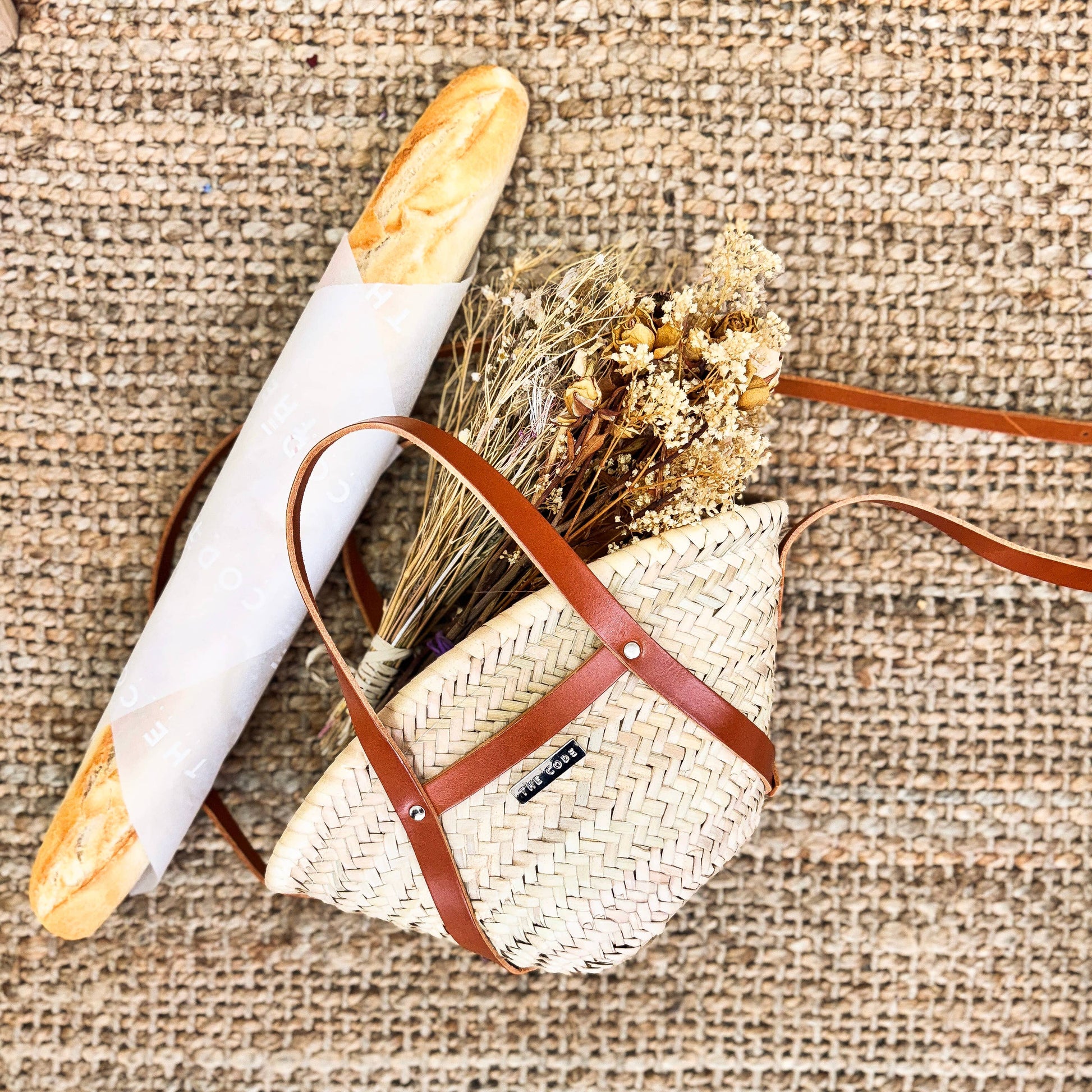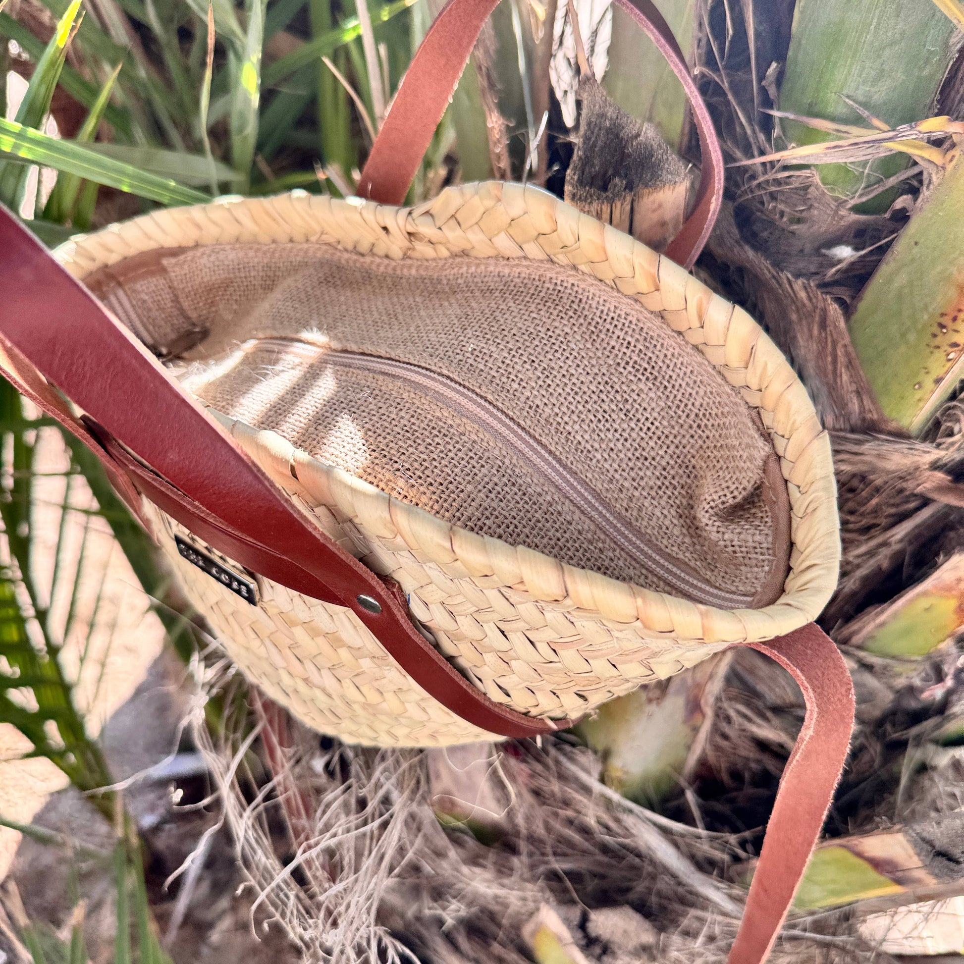 Mini panier/sac bandoulière en cuir parfait pour la ville -Couleur : marron cuir. -Dispose de poignées et d'une bandoulière réglable pour le porter comme vous le souhaitez -Fermeture éclair avec toile de jute organique artisanale -Dimensions 29 x 9 x 15 cm environ. Étant donné qu'il s'agit d'une pièce réalisée à la main, les dimensions peuvent varier de 2 à 4 cm, ainsi que la forme que chaque pièce prend lorsqu'elle est cousue et finie de manière artisanale.