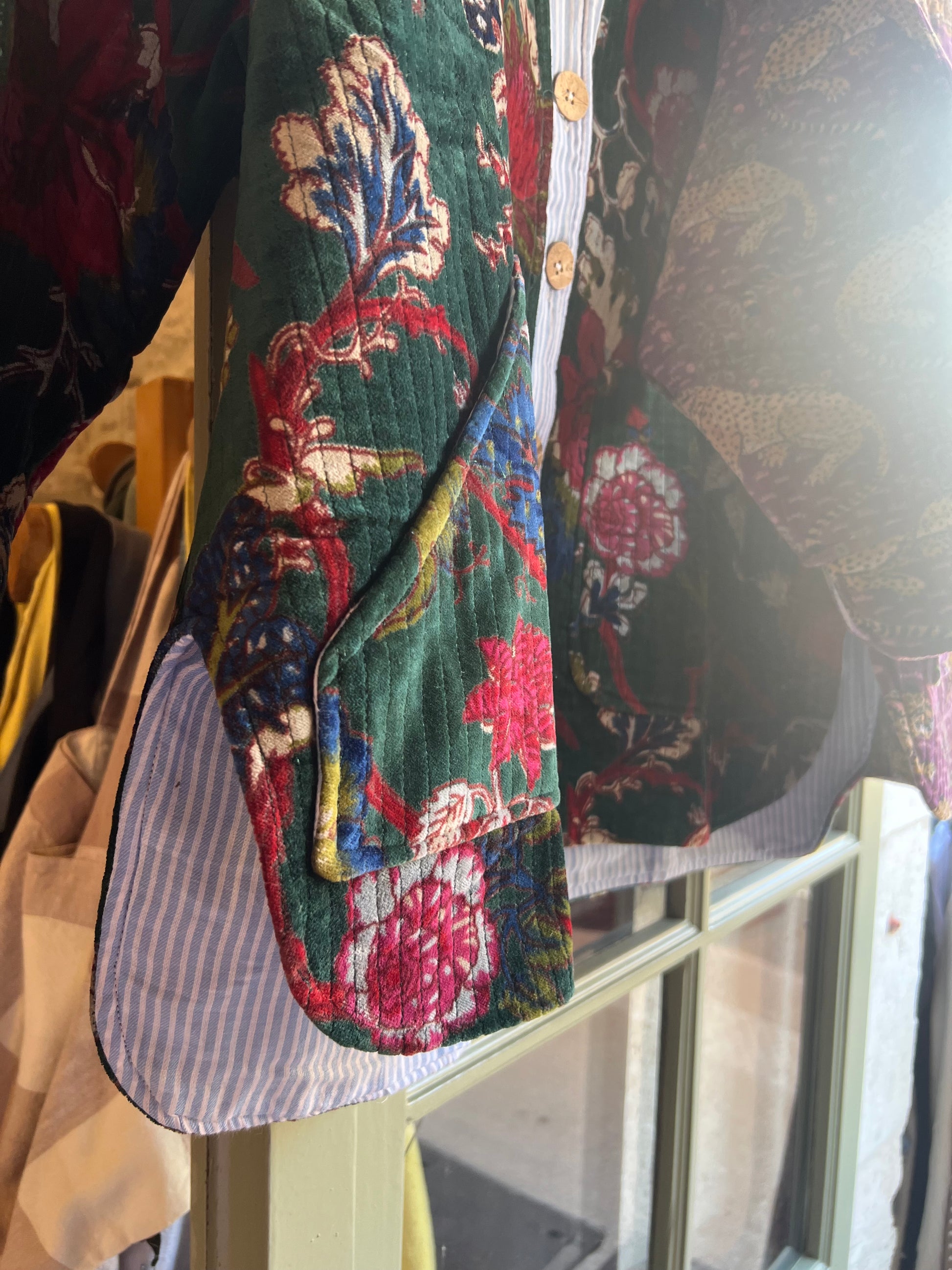 Veste en velours matelassé doublée coton rayé, 100% coton.