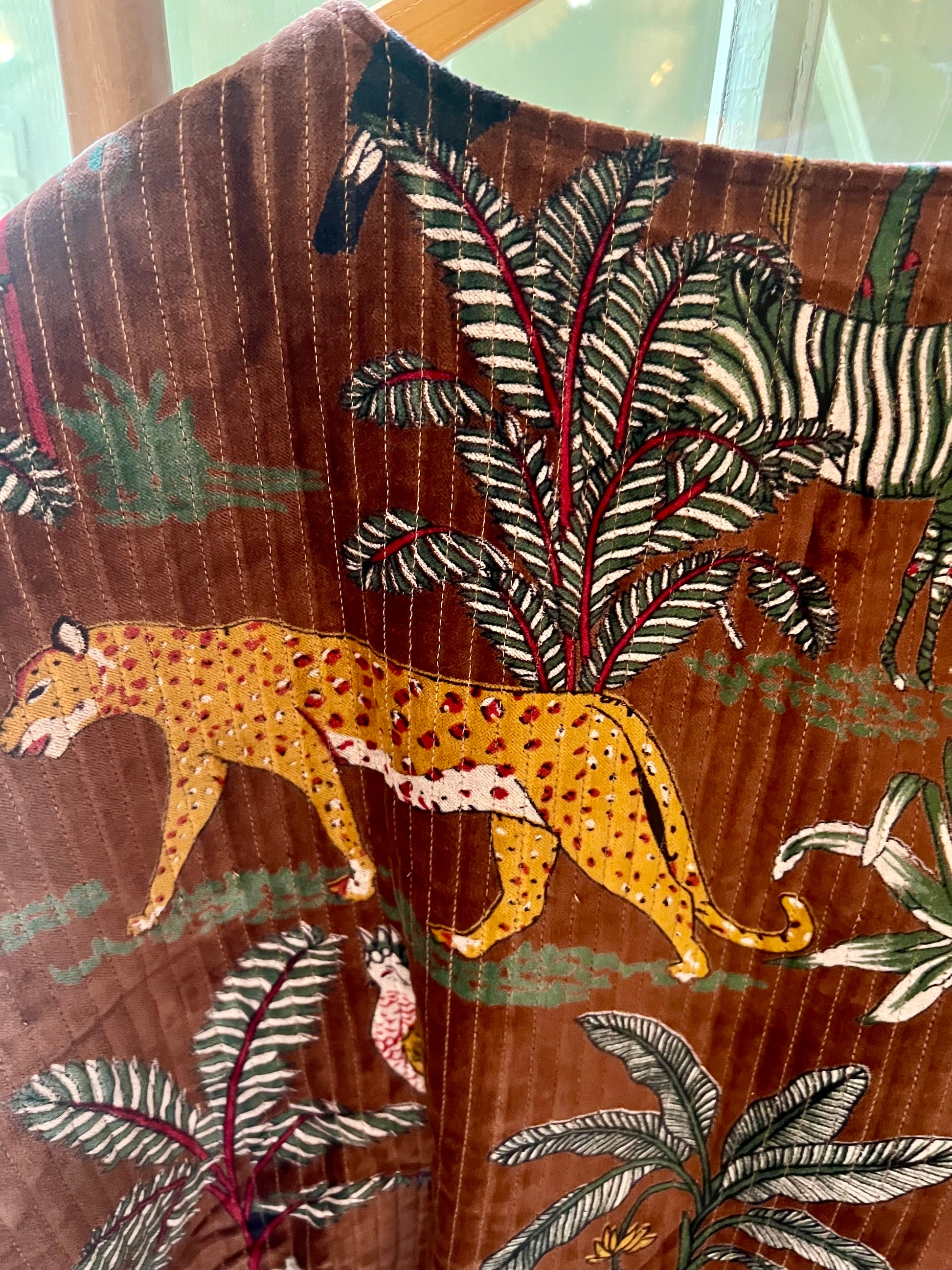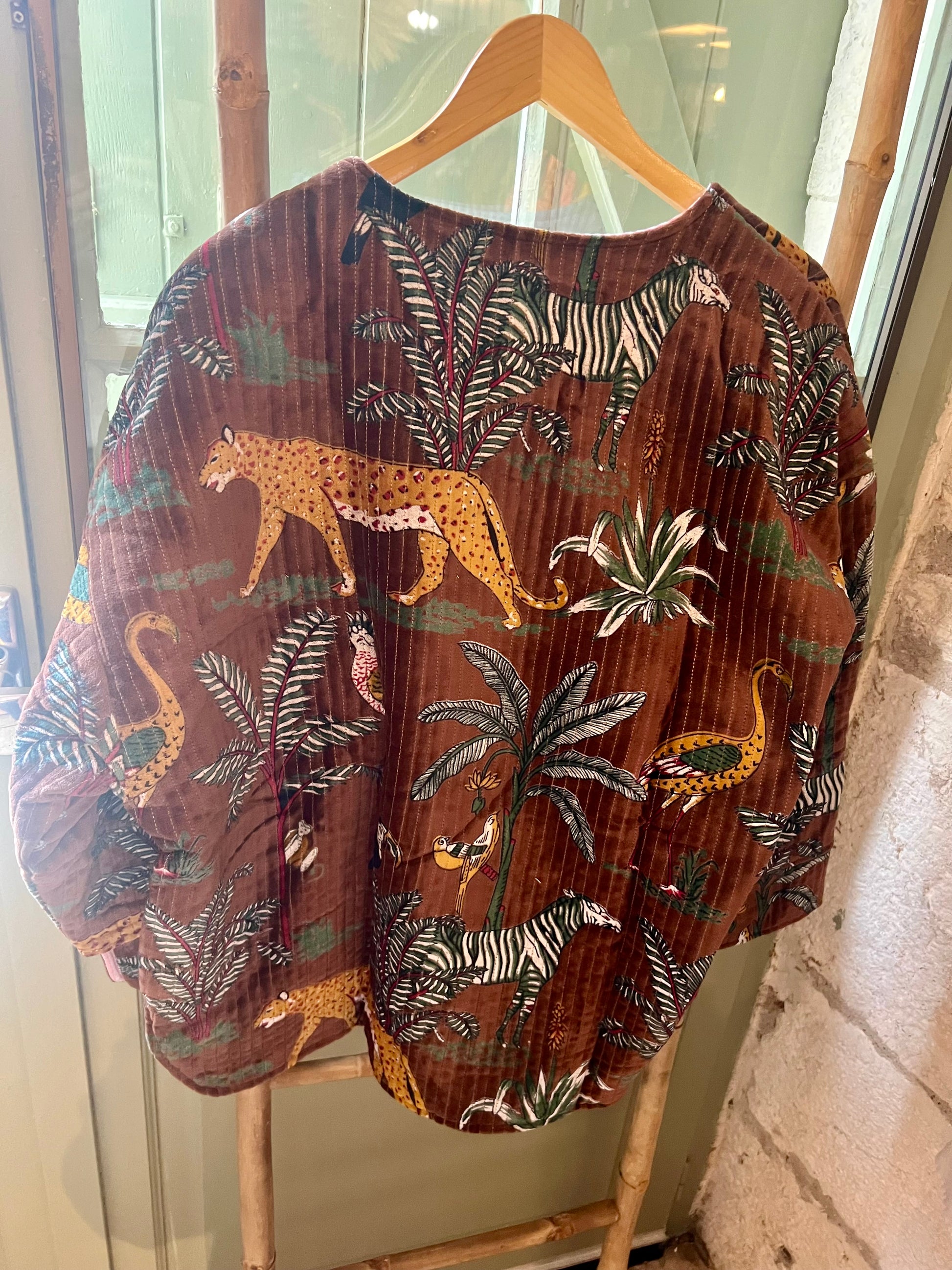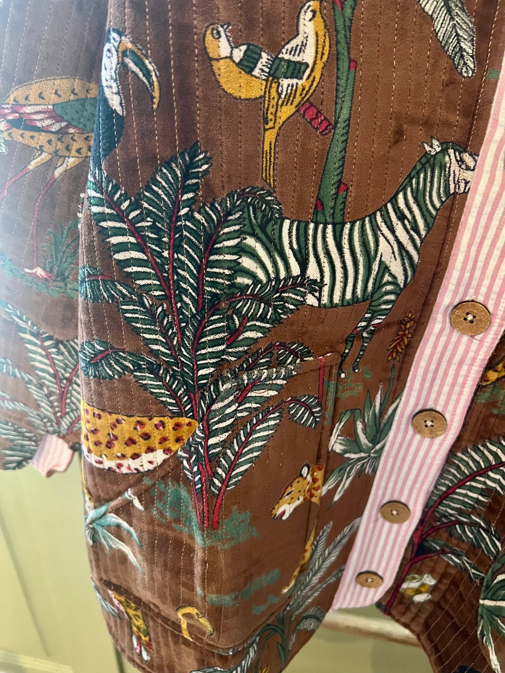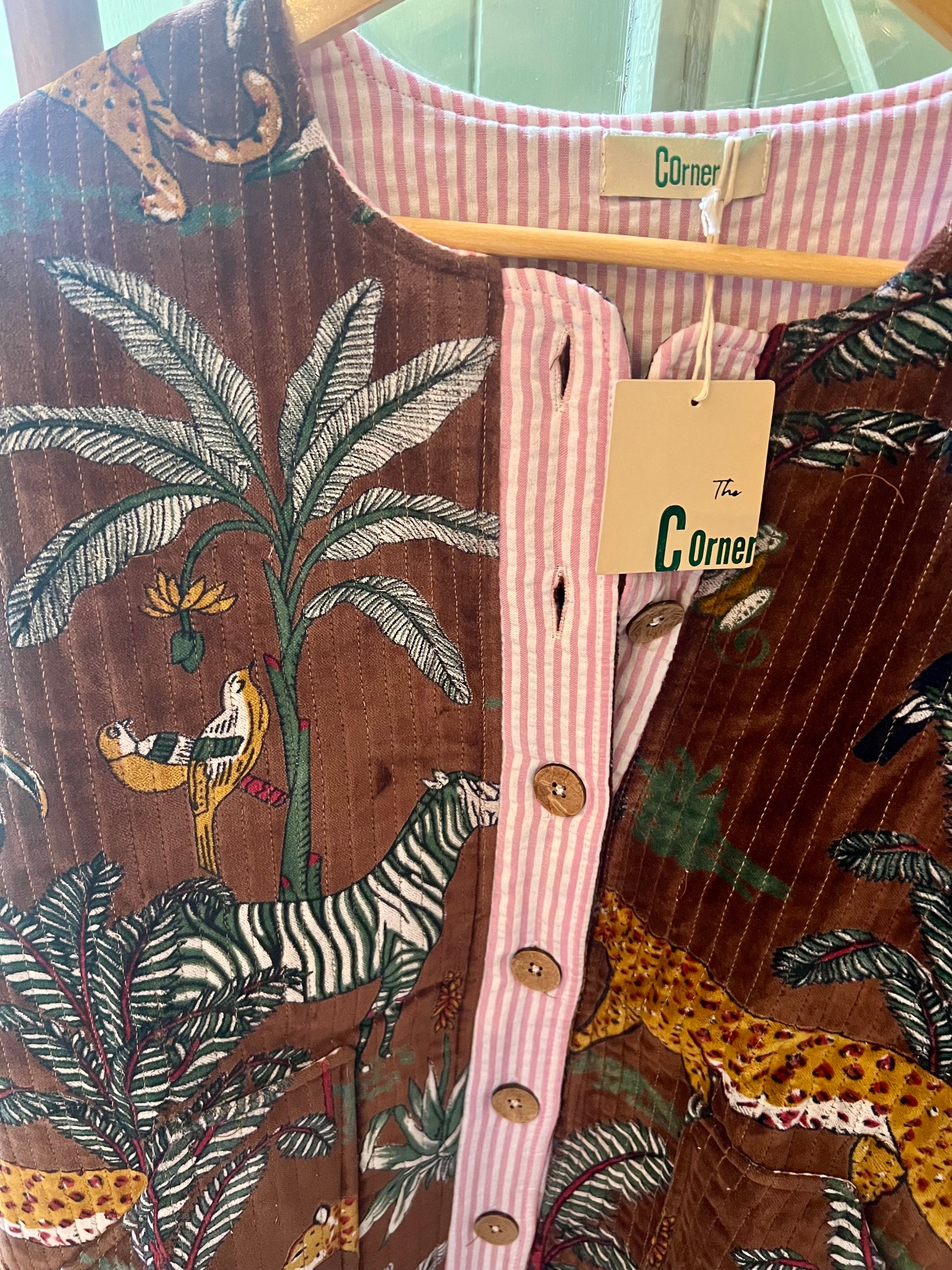 Veste en velours matelassé doublée coton rayé, 100% coton.